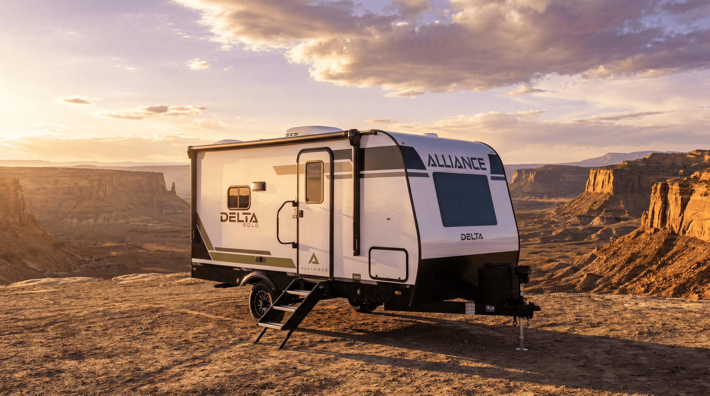 Win a brand-new 2026 Alliance Delta Solo ML166 — queen bed, full bath, slide-out, solar, and a 32" TV. One winner. Completely free.
