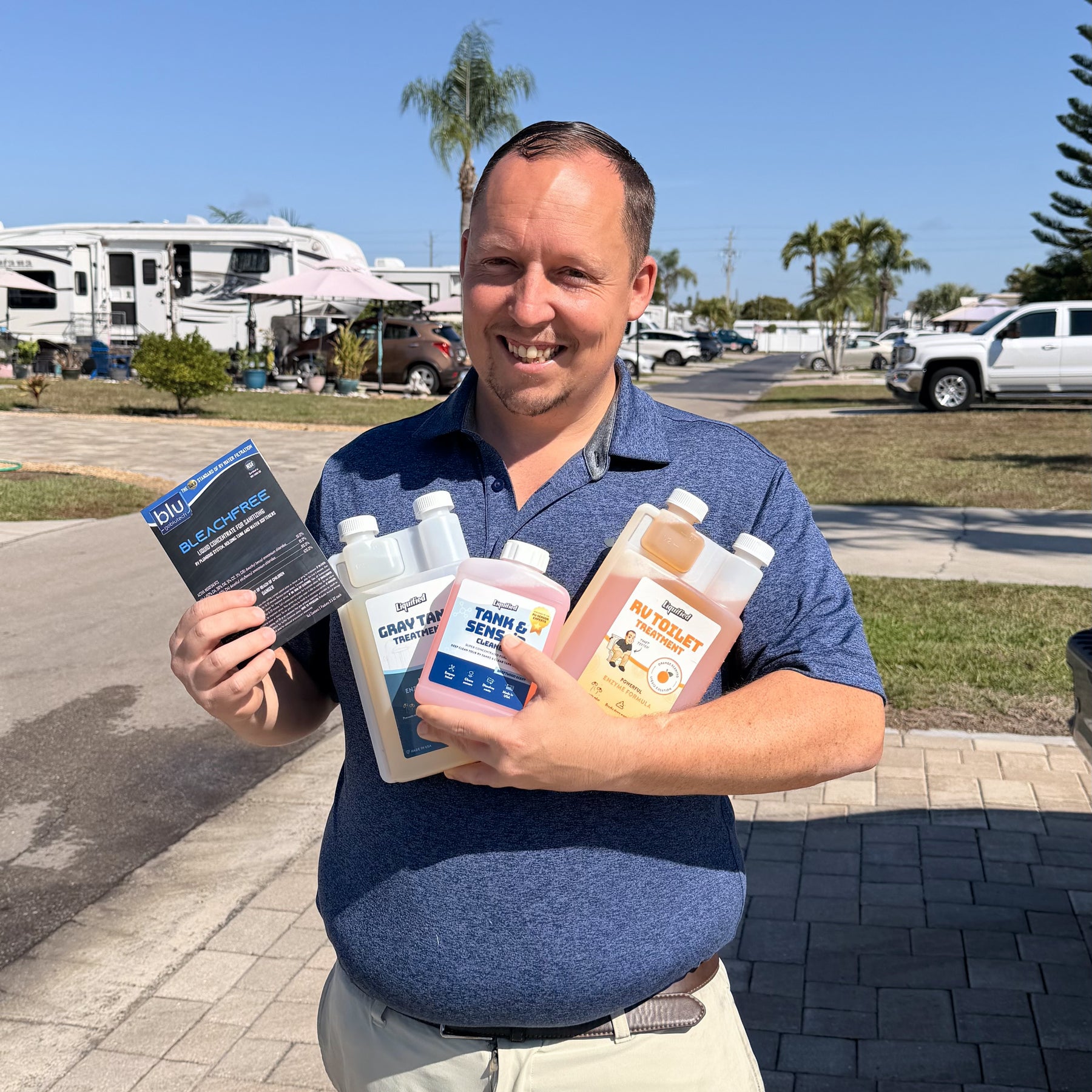 This kit solves both problems. BluTech BLEACHFREE sanitizes your system safely. The Liquified trio handles the rest — breaking down waste, eliminating odors, and keeping sensors reading accurately all season long.