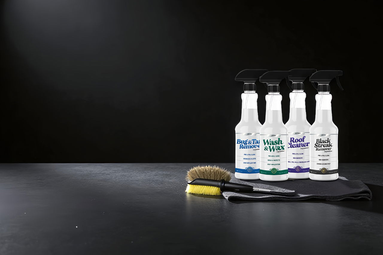 Each pack includes the full Liquishine lineup: Wash & Wax, Bug & Tar Remover, Black Streak Cleaner, and Roof Cleaner—plus exclusive Founding Member perks like your T-shirt, pin, digital badge, and free shipping.
